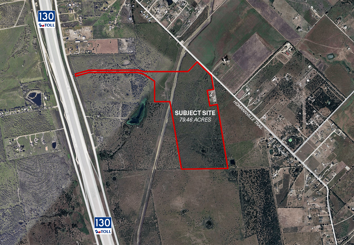 Acreage on corner of Toll 130 and FM 1185 available in minimum tracts of 10 acres.